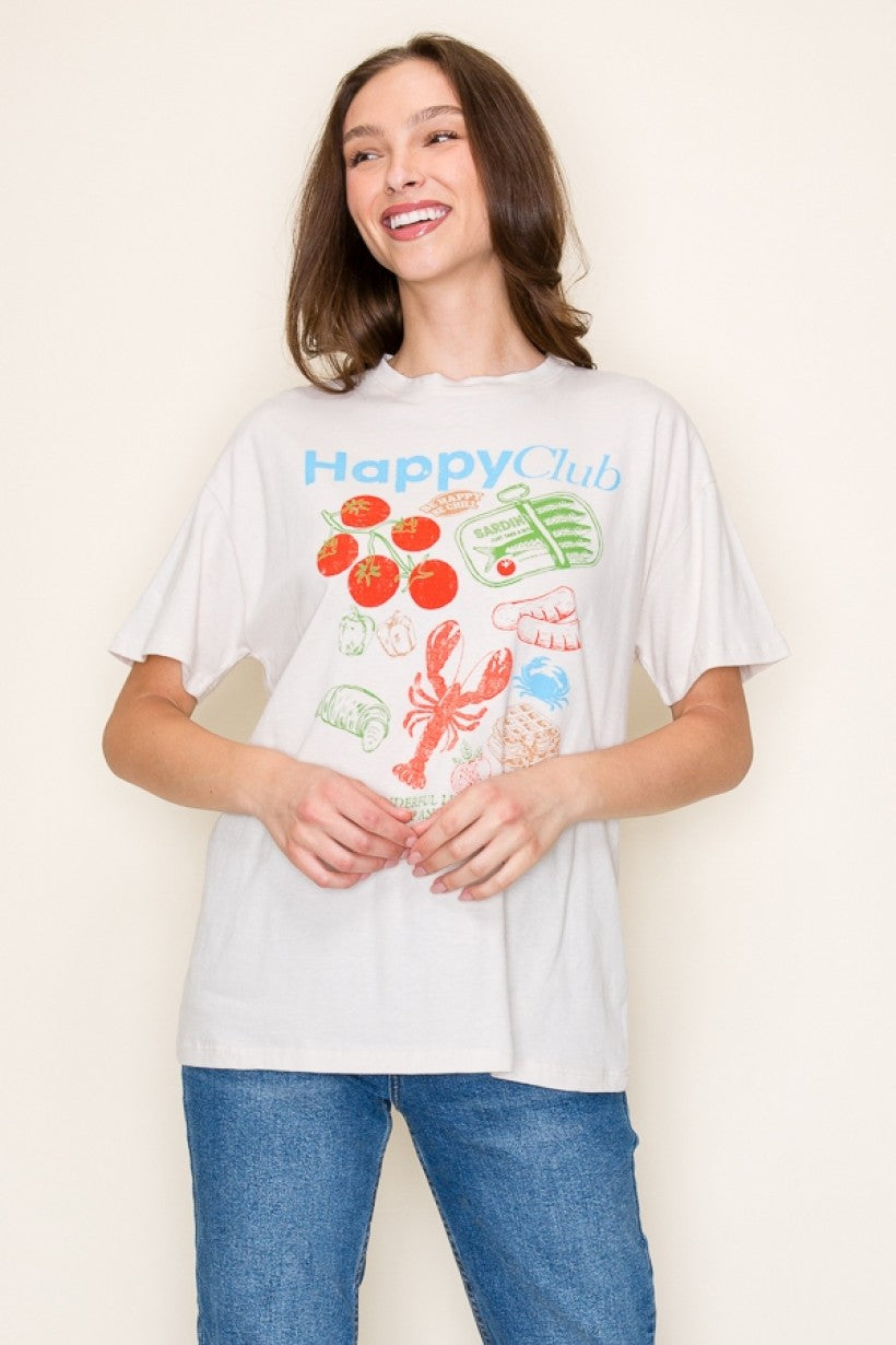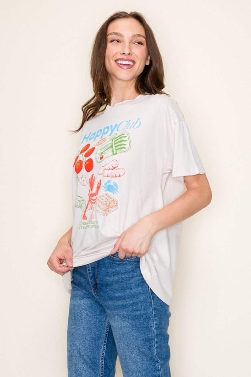 Get yourself a piece of happiness with the Happy Club Foodie Oversized Graphic Top. Made from 100% cotton, this top is not only super cute but also incredibly comfortable. Perfect for any foodie and guaranteed to spread smiles (and maybe some food cravings) wherever you go!