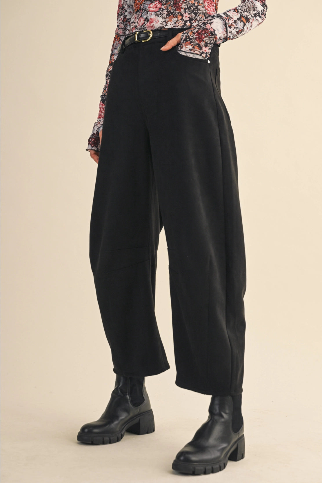 Experience unmatched comfort and style with our Suede Barrel Pants in Black and Taupe. Designed with a fashionable fit, these pants offer versatility that effortlessly elevates any casual day look. Their soft suede texture provides a luxurious feel, making them the perfect addition to your wardrobe for both comfort and trend-forward appeal. Whether out for a relaxed outing or meeting friends, these pants ensure you stay stylish without compromising on ease.
