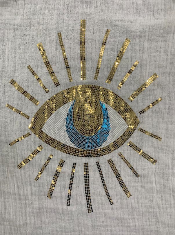 Experience effortless style with the Summer Breeze Evyl Eye Beach Cover Up. Made from lightweight, soft gauze cotton, this oversized long-sleeve shirt offers a comfortable, loose fit perfect for warm days. The trendy sequin Evyl Eye design adds a unique, eye-catching detail that sets you apart. Ideal for beach outings or casual wear, this breathable cover up combines comfort and fashion to keep you cool and confident all day long.